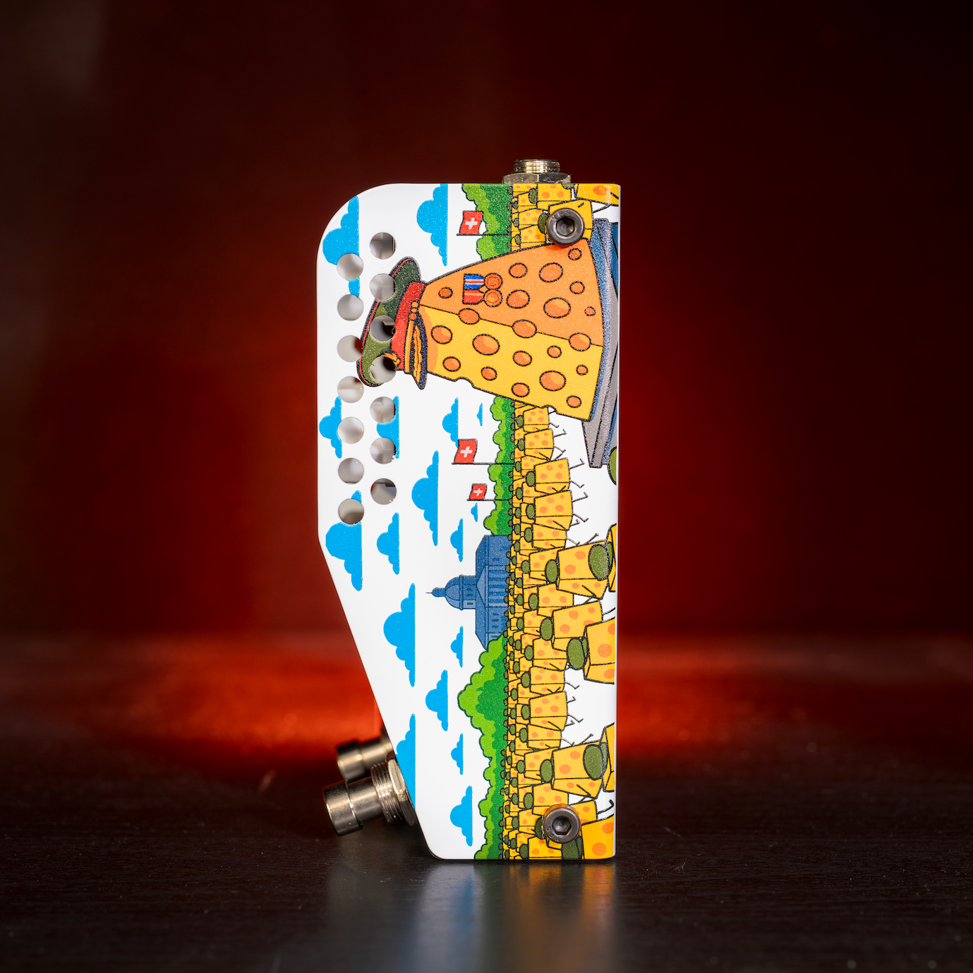 Internamente, o pedal é imaculadamente construído usando resistores de metalfilm premium de 1%, capacitores Wima e Panasonic e conectores Neutrik. Estes são o crème de la crème do mundo da eletrônica e quando combinados com um robusto PCB banhado a ouro e potenciômetros à prova de poeira, a receita é tão boa quanto possível.