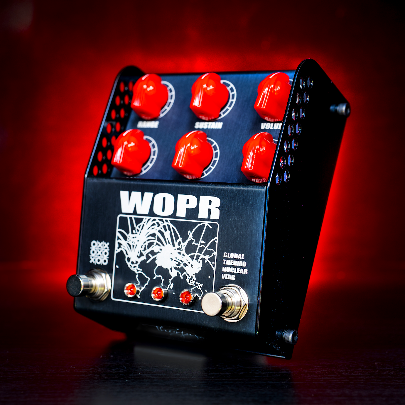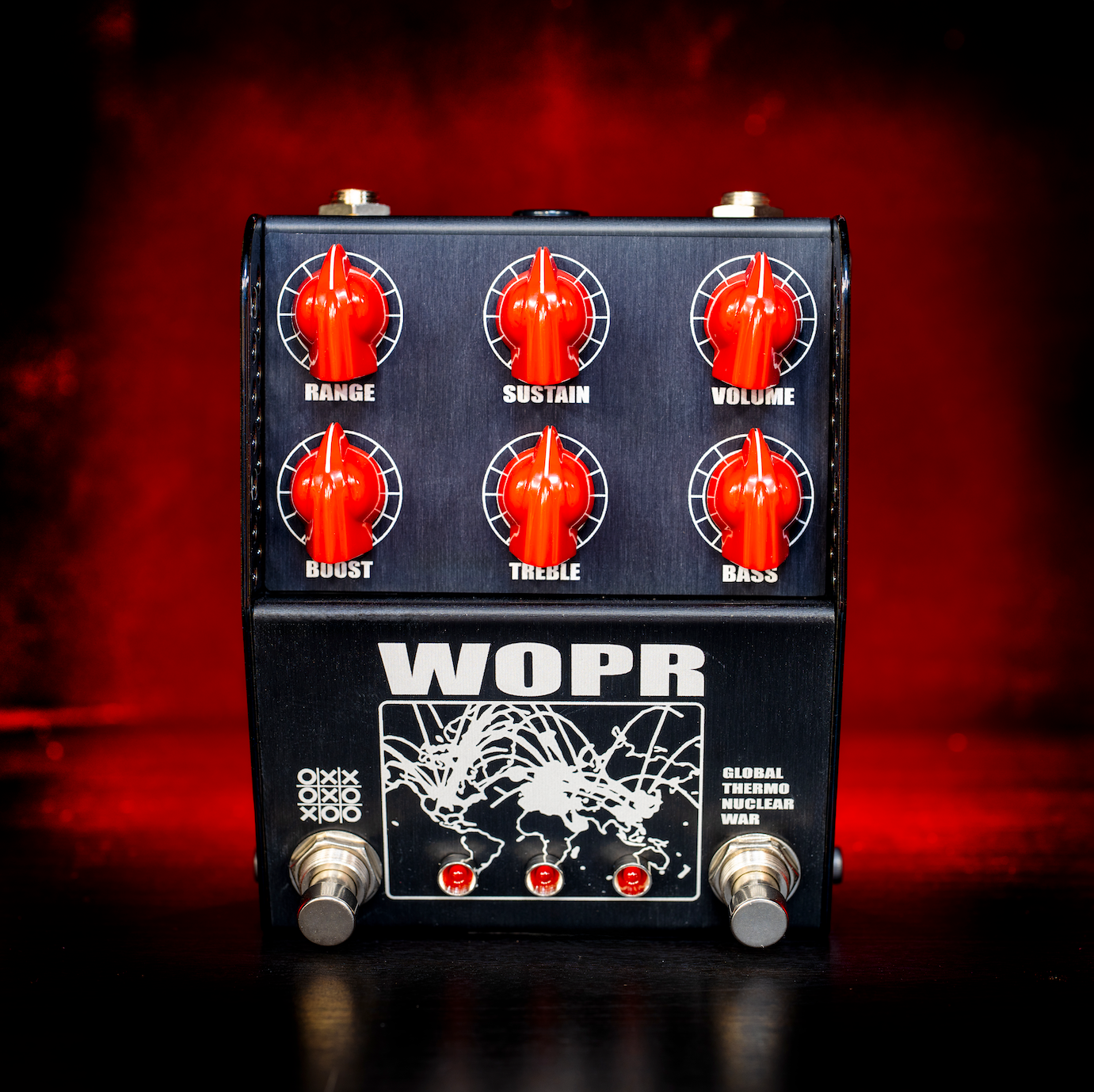 The WOPR is one of those pedals that started with an artist/friend wanting something to sound a bit different and elevate their sound beyond what we normally offer. Oli Brown (Oli Brown and the Dead Collective, formerly of Raveneye) has been a friend for a while so I thought I could help him out. He initially wanted a Fallout cloud coupled with the silicon Rangemaster-inspired circuit from the Veteran. This combo was absolutely massive sounding and Oli loved it and has used it for years now.